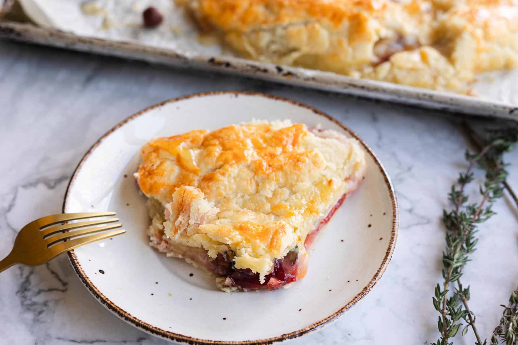 Once the cranberry brie in puff pastry is baked, remove it from the oven and allow it to cool for a few minutes before serving. Serve warm with bread, crackers, or sliced fruits like apples or pears. Enjoy this festive treat that’s perfect for holiday gatherings or any occasion!